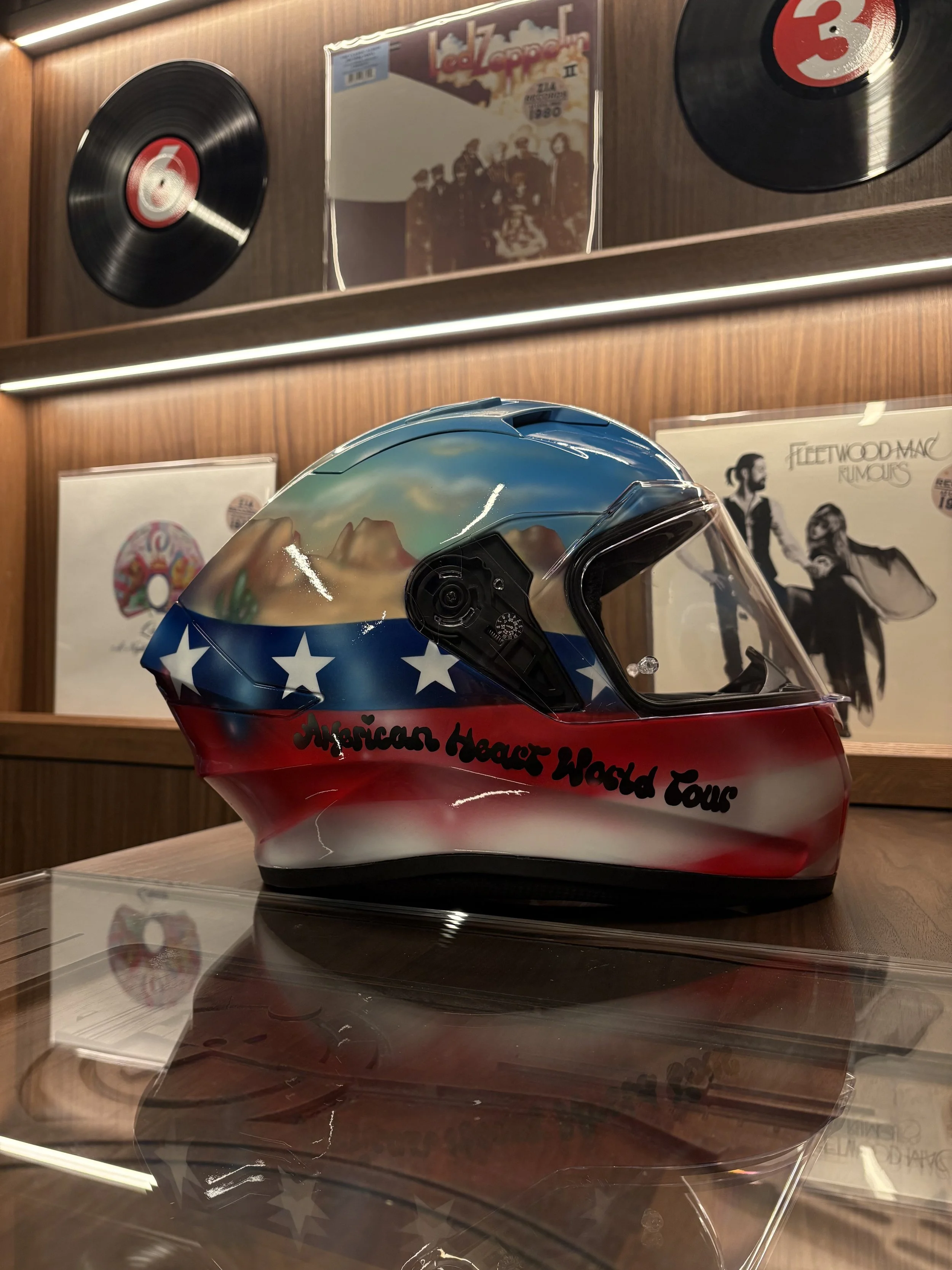 Custom painted helmet commissioned by Desert Diamond Arena for Benson Boone’s American Heart World Tour, 2025.