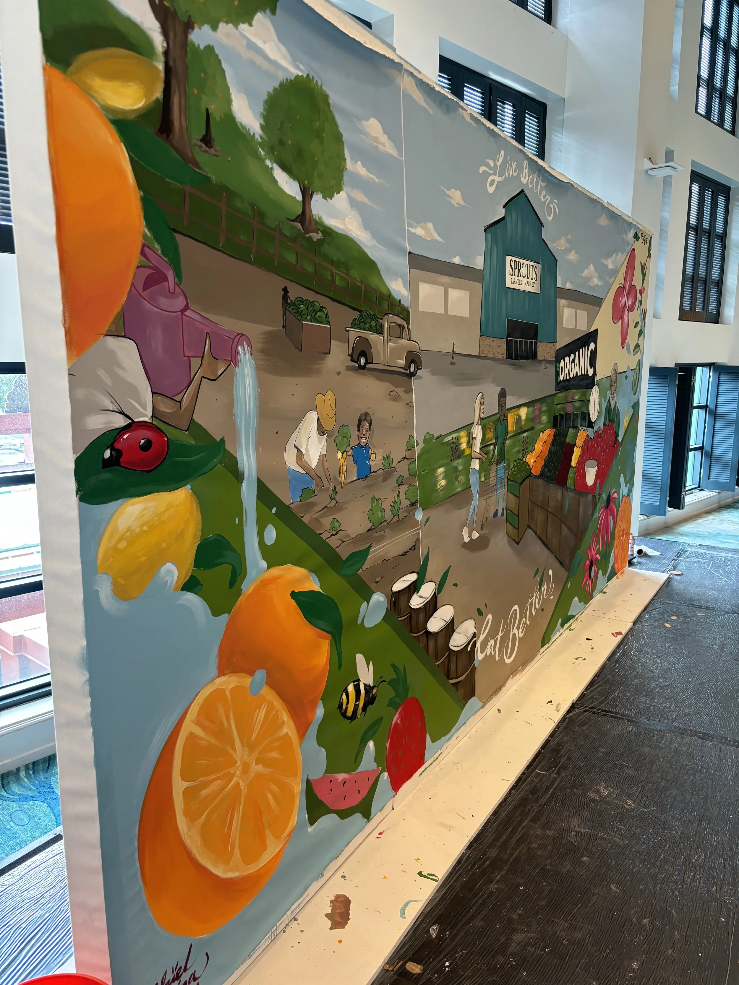 Live painting in Orlando, Florida at Disney Worlds Swan and Dolphin Resort for Sprouts Farmers Market Organized by Rebel Experiences.